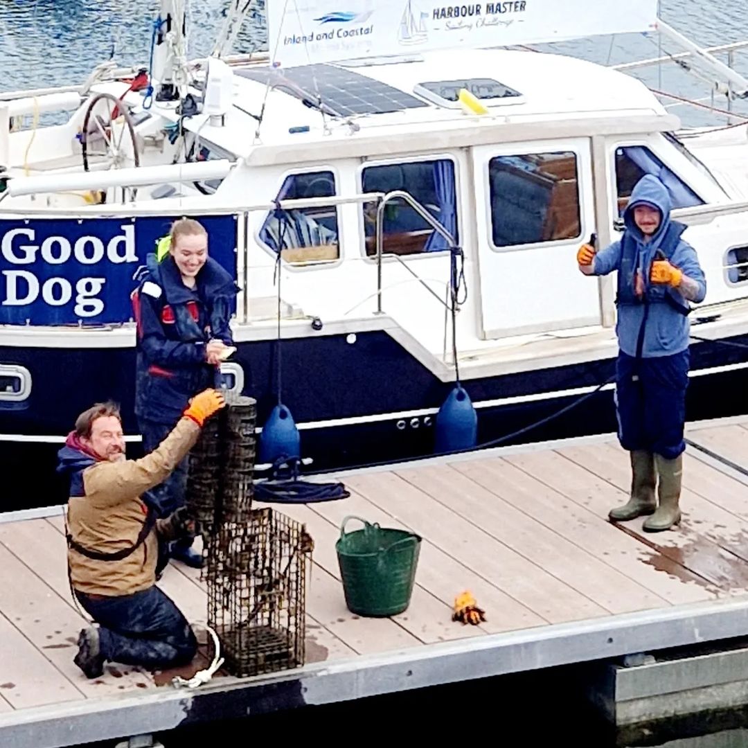 The marina is home to a fascinating project run by Ulster Wildlife to restore "native oyster" beds. 800 mature oysters, sourced from Loch Ryan in Scotland, are being suspended from the pontoons in 30 cages. From these, a staggering 800 million oyster larvae will be released into surrounding waters every year, boosting biodiversity and reducing water pollution levels. (See comment for more info).