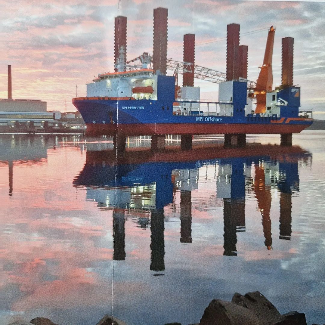 In 2020 Stuart had to "make up the rules" when the wind farm construction ship, MPI Resolution needed to "Lock Down" in his harbour. Being able to "jack up" on its own legs, it became a temporary island in his port - problem sorted!
