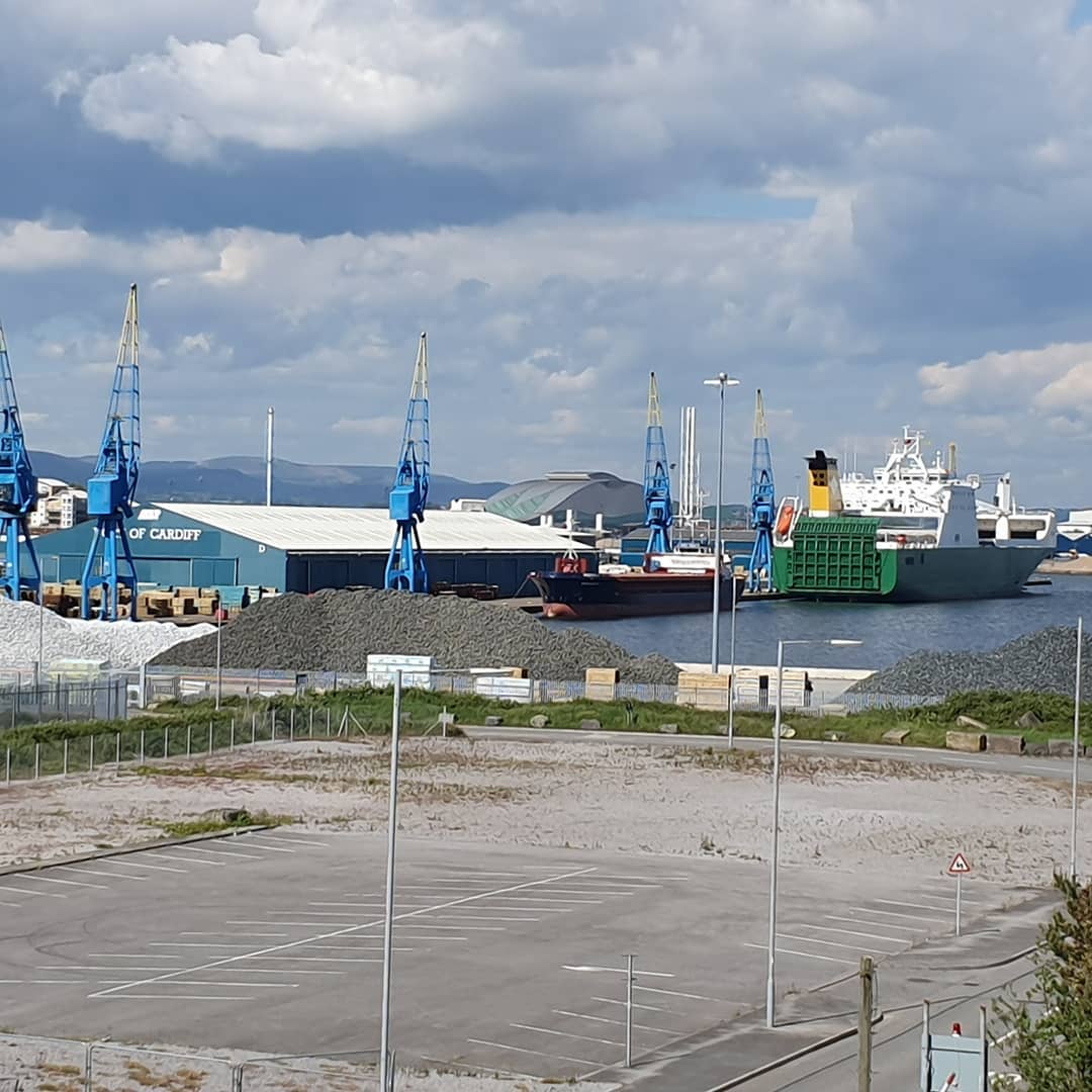 While Barry specialises in Chemicals, Port Talbot importing lower quality coal & exporting high grade coal, and Swansea (a 520 acre of port) aggregates; Cardiff handles a variety of cargo. In the photo you can see a large white RoRo ferry tied up, which I found out later is one of the ones hired by the government as a back up for post Brexit operations. Apparently it is sitting there, rather than at anchor, fully manned and ready to go. NB Tom did not tell me that! .