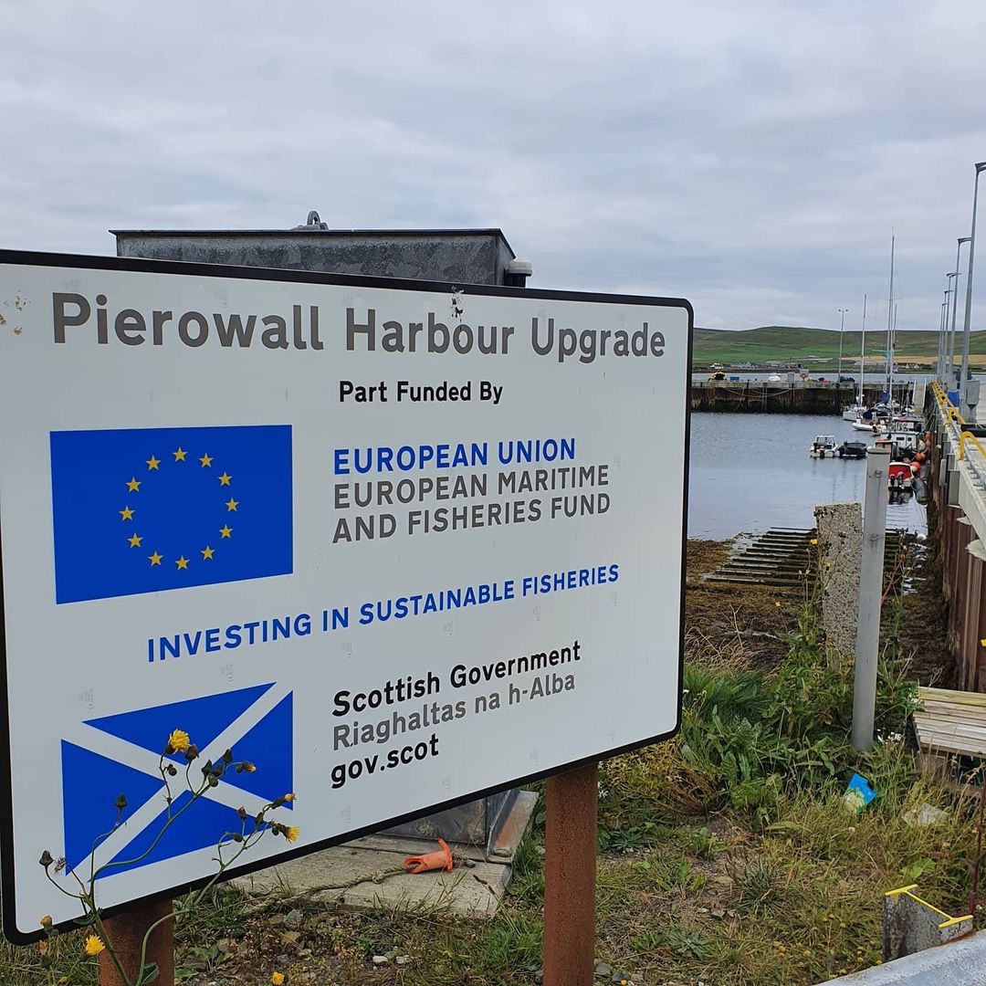 Tommy told us how only local people can buy houses on Westray, so there are very few second homes; how the community works with just 600 people; how he got £1.7M EU funding to add a metre to the height of the harbour wall (the sea used to wash over the top in a storm!); about the crab processing business which sells live crabs to China for twice the normal price; how the very first salmon farm was started up in Westray in 1989 by a local cattle farmer using the ship-to-ship oil pipes as the floating rings; how this business was then sold to the Poles, then Norwegians and now the Canadian company Cooke Aquaculture.