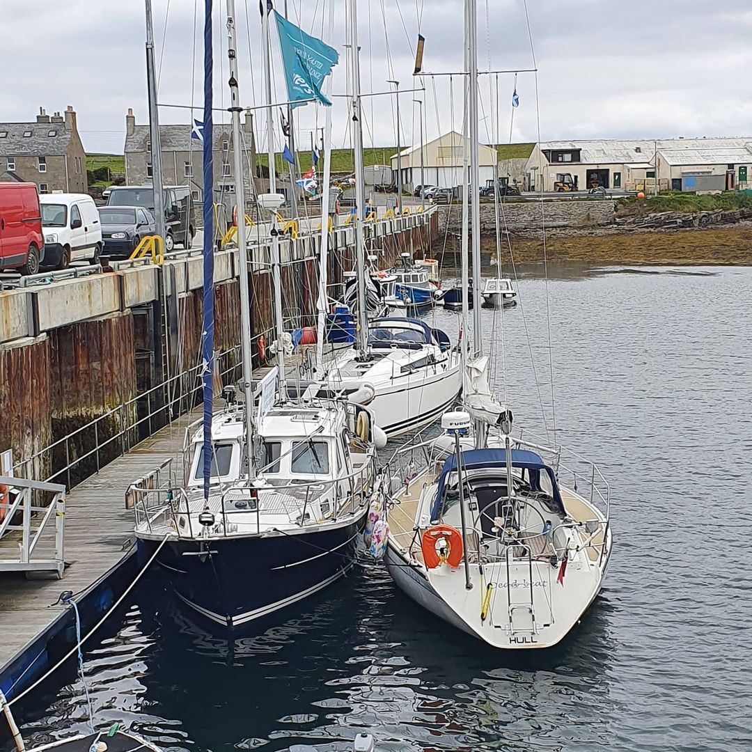 The father of the island is the very welcoming Tommy Rendall who has been working at Pierowall harbour for 53 years. HM since 1997, he started as the ferryman driving the school "bus" (see photo 4) to and from Papa Westray 4 miles away. He once welcomed a Norwegian family into the harbour who were circumnavigating the world for 5 years. Their boat took 12 days to mend and so Tommy had them back to his house to teach the children all about gardening! The boat's owner, Stien Torbergson, is now a Harbour Master in Norway........